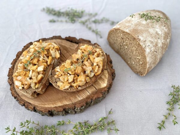 Popcorn is an essential part of an evening movie. Today we're showing you a special, sweet "popcorn" recipe that tastes like winter and is perfect for cold evenings. All you need is White American Toast, sugar, butter and water to make this delicious treat. First, dice up 4 slices of American toast. This bread is 12 x12...
